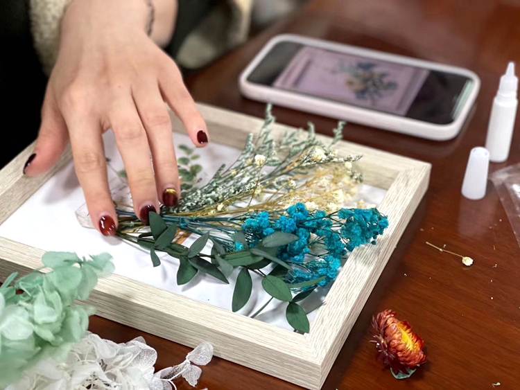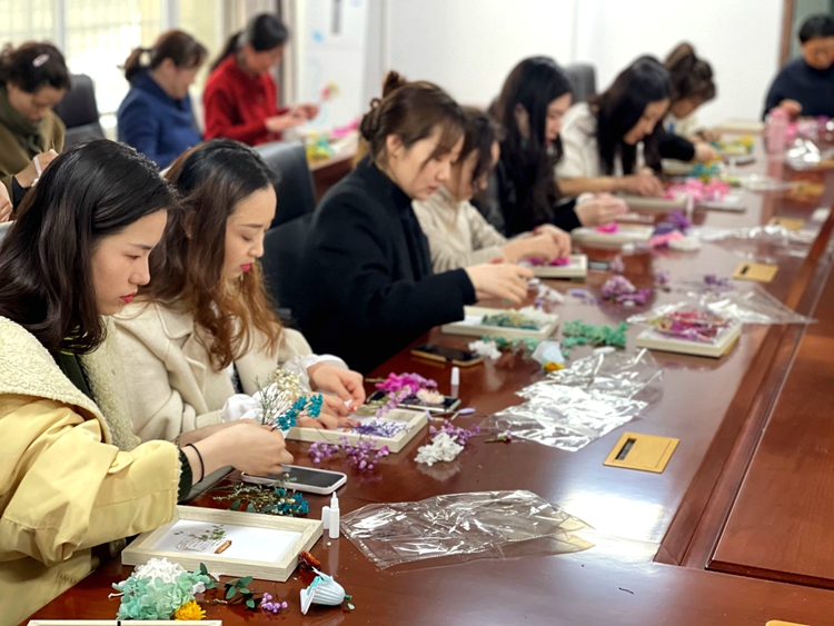 用双手装扮幸福美好生活,3月9日下午艺术学院组织开展“永生花手工相框制作”活动,全院女教职工共同欢度“三八”妇女节。