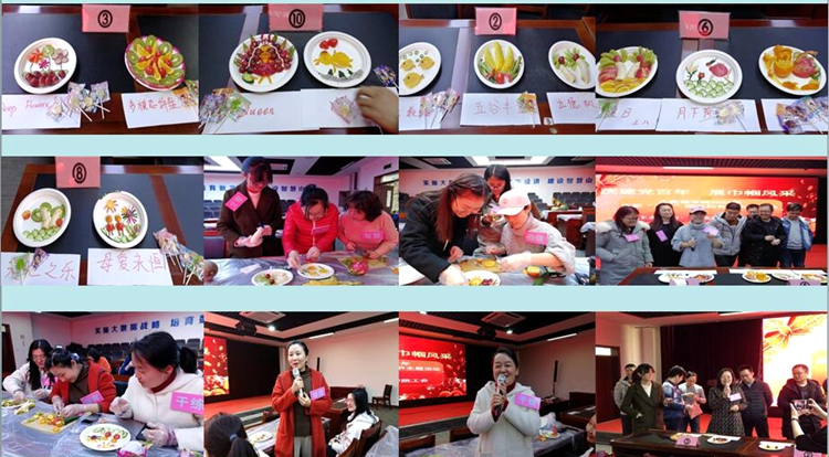 本次“美好美妙美丽”水果拼盘创意大赛别开生面、极富乐趣。活动共有5个代表队参赛,在60分钟的比赛中共产生了11件作品。大家充分发挥各参赛团队的凝聚力和创意创作才智,拿出了各自的“看家”本领,全神贯注,在悠扬的音乐声中,一盘盘造型精美、五彩缤纷、果香四溢的水果拼盘呈现在大家的面前。它们不仅色形俱全,而且内涵丰富、寓意深刻。《多模态融合》具有鲜明大数据学院学科特色,创作者将大数据、人工智能、物联网等概念融合于作品中,表达了超越与融合;《Deep Flowers》由几组花朵组成,寓意着教师肩负培养祖国未来花朵的责任与使命;《立德树人》由一棵小树逐渐长大的动态表达了“立德树人”的教育理念;作品《母爱》由两位十月怀胎的准妈妈组成画面主人公,表达了母亲作为女性的身份平凡而伟大,同时作为女儿身份传承百善孝为先的精神,以真实的情感流露感染了在场的评委与观众。《Queen》《冲鸭!》《五谷丰登》《大数据》《月下荷塘》《天伦之乐》《海滨假日》作品等都从不同的角度表达了创作者对美好生活的向往与追求,以及对家庭、对集体的美好祝福。