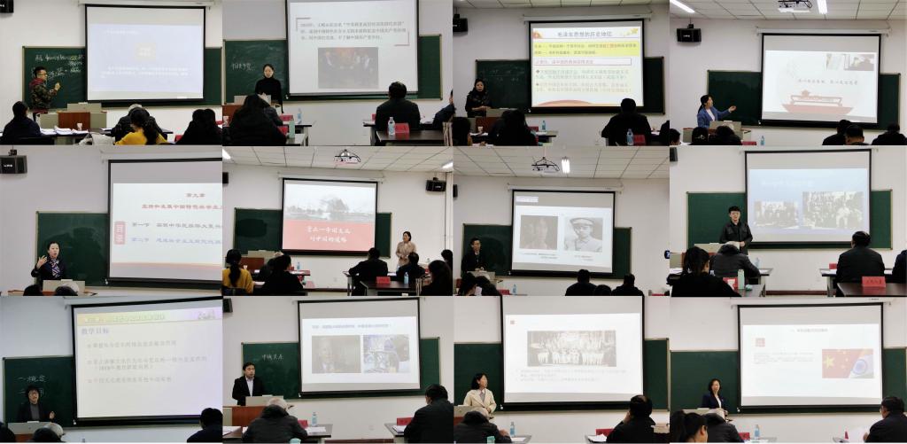 本次竞赛共有12名教师参赛,通过运用PPT、视频短片、模拟互动等形式,对《思想道德修养与法律基础》、《马克思主义基本原理概论》、《中国近现代史纲要》、《毛泽东思想和中国特色社会主义理论体系概论》、《形势与政策》五门思政课程中的选题内容进行了讲解。各位教师紧紧围绕教育部对思政课程的要求,充分结合习近平新时代中国特色社会主义思想,展示出新时代思政教师的新风采。