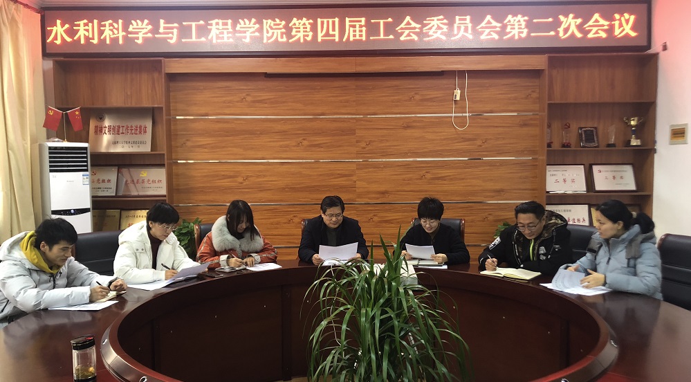 12月25日上午,水利科学与工程学院在水利馆二层会议室召开第四届工会委员会第二次会议。全体工会委员参会,会议由工会主席李治勤主持。
