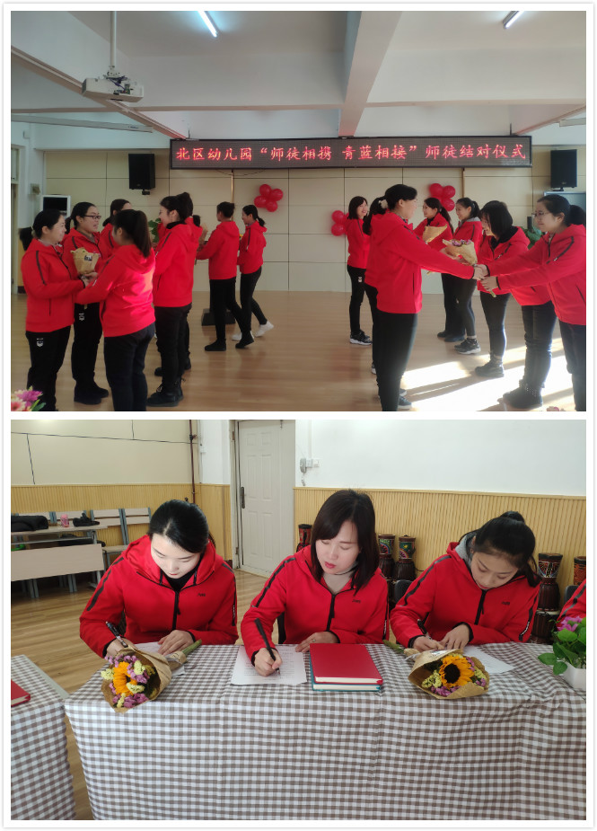 为发扬我园教师“传、帮、带”的优良传统,使青年教师在教育教学中迅速成长,后勤工会北区幼儿园于2019年12月12日开展了“师徒相携 青蓝相接”师徒结对活动。
