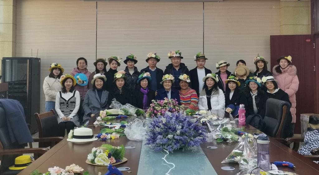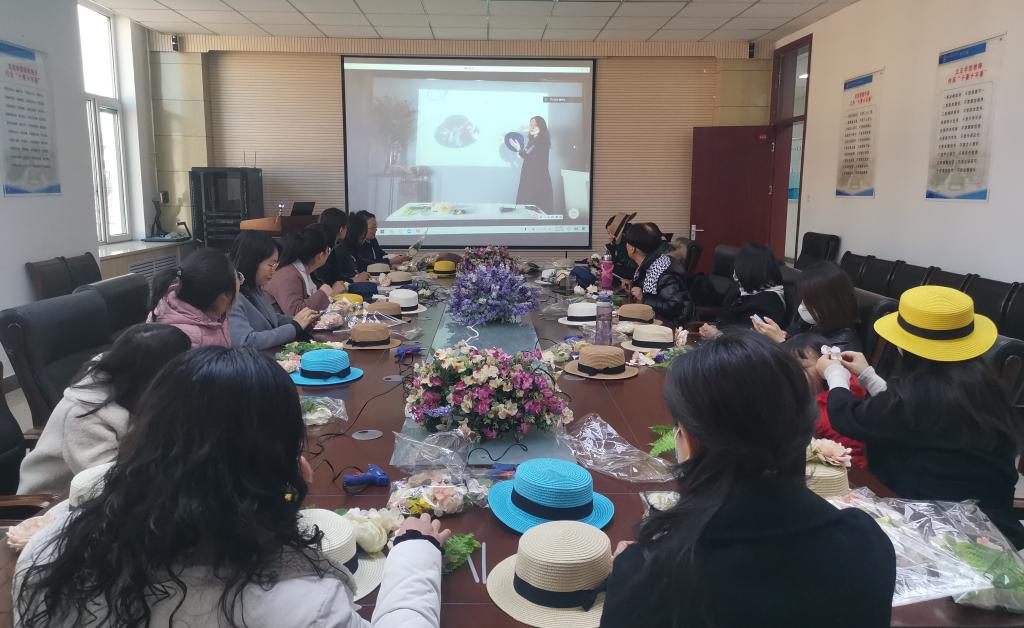 3月2日上午,为庆祝第112个“三八”国际妇女节,文法学院工会组织女教职工开展了“春风十里绽芳华”草帽花艺制作培训活动。
