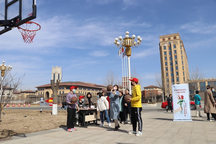 为纪念第112个“三八”国际劳动妇女节,喜迎我校120周年校庆,展示机关全体女教职工团结奋进的精神风貌。3月7日下午,机关党委在明向校区开展了趣味篮球活动,机关党委书记樊岚参加了活动。