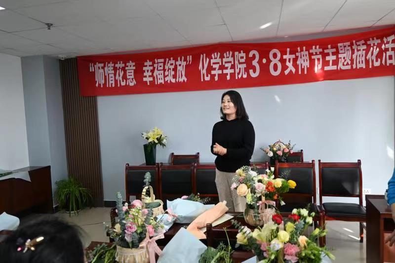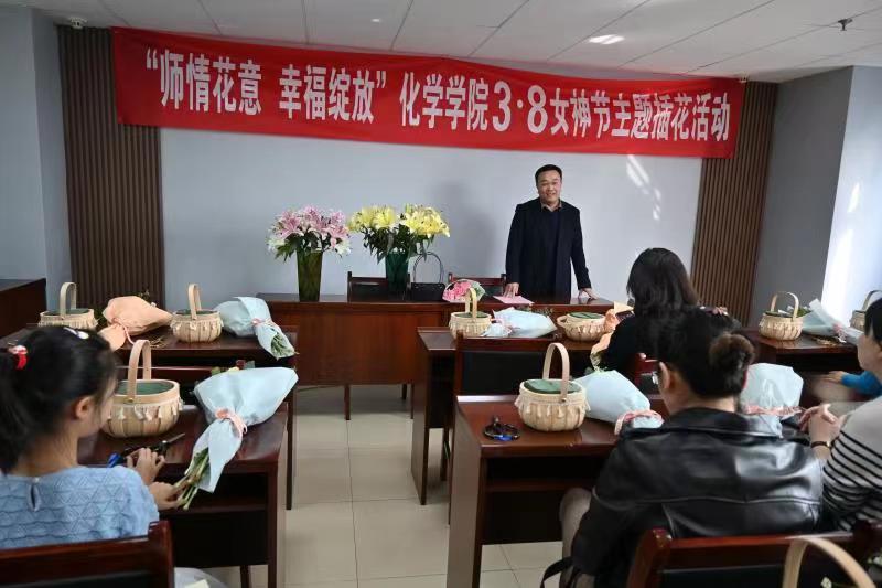 为庆祝第113个“三八”国际劳动妇女节的到来,3月8日下午,化学学院在博学馆B座八层会议室举办“师情花意幸福绽放”3·8主题插花活动。院党委书记朱晋华、副院长(主持工作)吴旭以及学院全体女教工参加了此次活动。活动由院工会负责人孙玥主持。