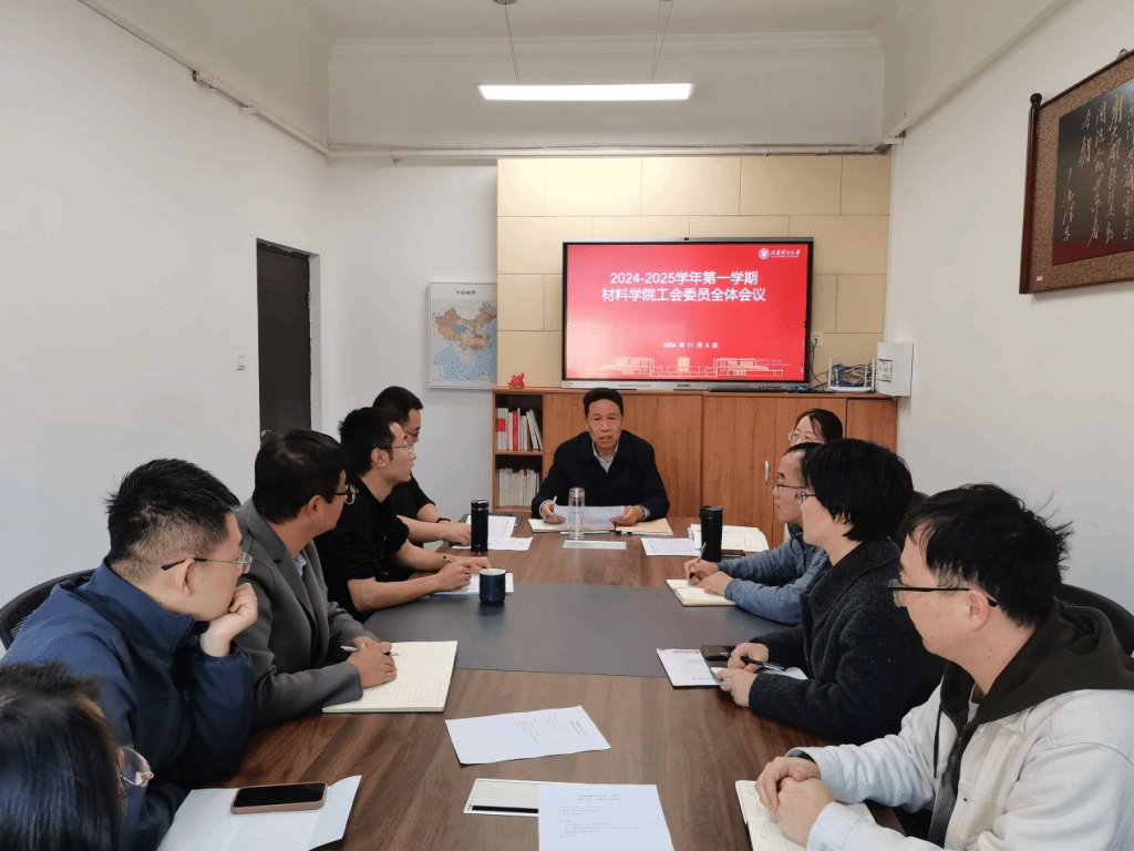 2024年11月6日下午四点在博学馆D座802会议室召开了2024-2025学年第一学期材料学院工会委员全体会议。材料学院党委书记游志勇、材料学院副院长兼院工会主席牛晓峰、副主席郭春丽及全体工会委员出席了会议。会议由牛晓峰主持。