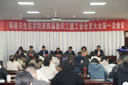 2025年10月14日下午,环境与生态学院第四届教职工暨工会会员大会第一次会议在博睿楼405会议室隆重召开。校工会主席周伟应邀出席,学院党委书记潘燕春、院长王建成、党委副书记丁娟、副院长马旭莉、副院长张峰及第三届工会主席秦育红在主席台就座,学院全体教职工参加了会议。